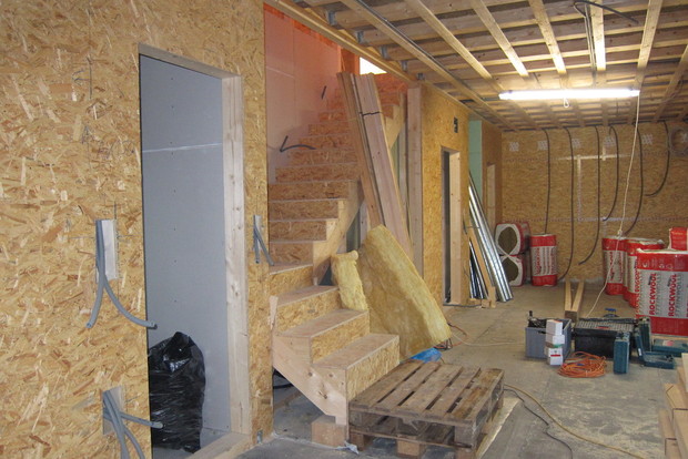 Derzeit arbeiten 5 Gewerke auf der Baustelle (Elektiker, Installateur, Trockenbauer, Zimmerer, Fassader), dementsprechend wild schauts aus.
